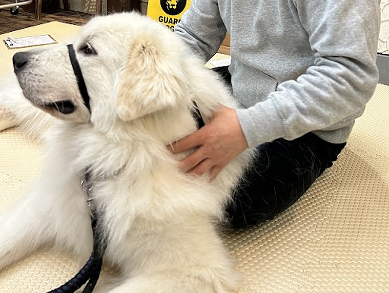 ただ揉むだけでなく、なぜその筋肉をほぐすのかを飼い主さんに説明します。